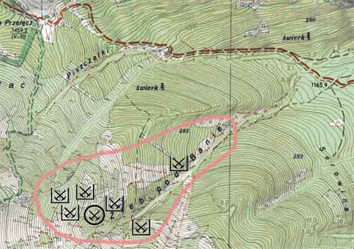 6. Przy szlaku na Iwanicką Przełęcz, nieco powyżej Polany Ornaczańskiej, na wys. ok. 1150 m. znajdują się pozostałości po sztolni – niewielkie wgłębienie terenu na zachód od szlaku oraz spora hałda po drugiej stronie ścieżki. Szukajcie, a znajdziecie ;)