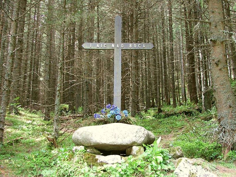 4. Krzyż Wincentego Pola. Jego podstawę stanowi kamień młyński służący do rozdrabniania rudy. Pochodzi prawdopodobnie z młyna, który istniał poniżej Hali Pysznej i był związany z zakładem przetwórstwa rudy „Na Kunsztach”. Po drugiej stronie drogi była niegdyś mogiła - według podań – królewskiego młynarza kruszcowego, zabitego przez zbójników.
